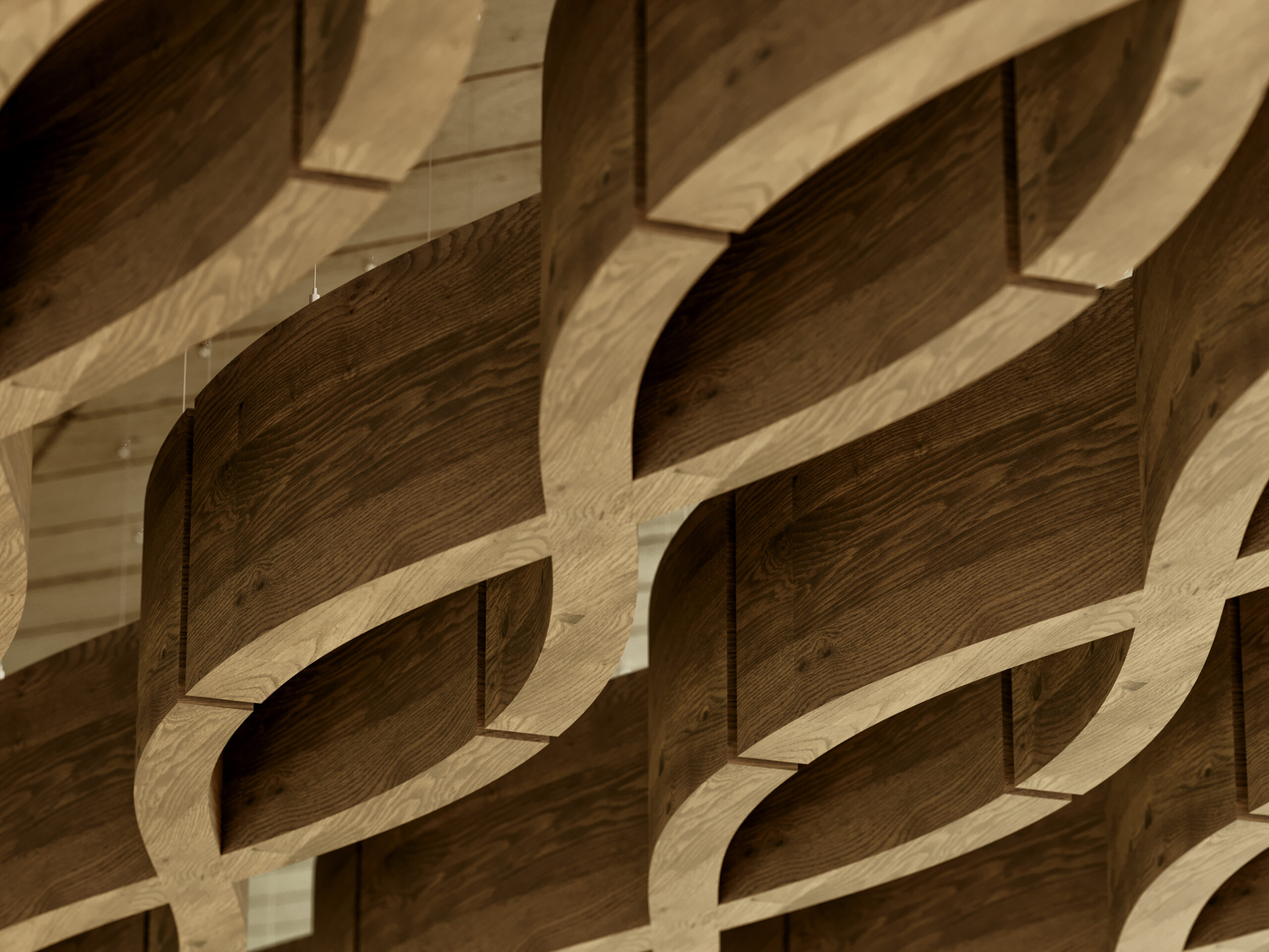It is equally effective in high-traffic environments like lobbies and lounges, where its dynamic presence and adaptable design deliver sound absorption in busy spaces.