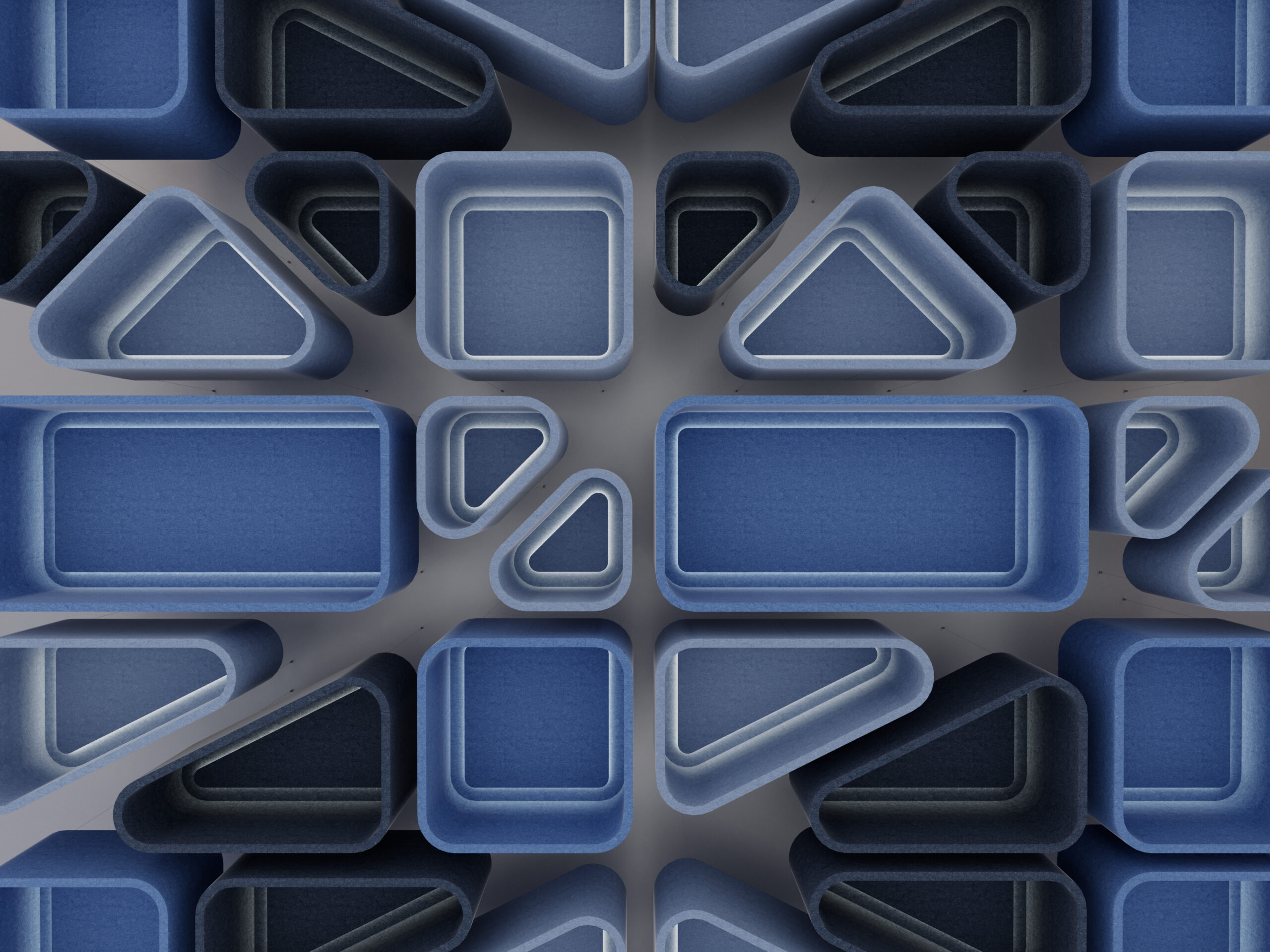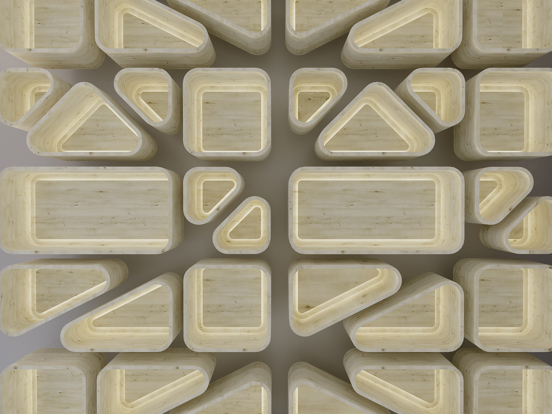Gently rounded edges soften their grand presence, creating an inviting, almost floating effect that adds depth and dimension to any space. The interior is softly detailed, offering a refined look that can be enhanced with optional integrated lighting. Available in five distinct models, each design can stand alone or be hung in multiples to form a luminous, floating centrepiece that elevates any environment.