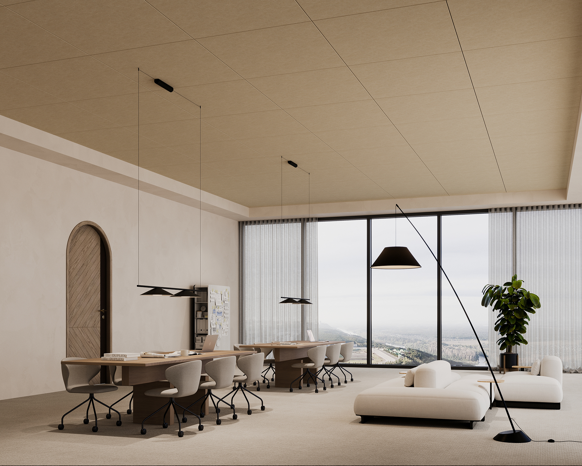 Crafted from hand‑selected fibres, the panels feature meticulous construction that ensures superior acoustic performance and a smooth, refined finish. With a strong commitment to sustainable, wellness‑focused design and availability across a wide range of colours, Premier Cover ceiling panels offer a versatile, contemporary solution that balances performance with subtle, considered style.