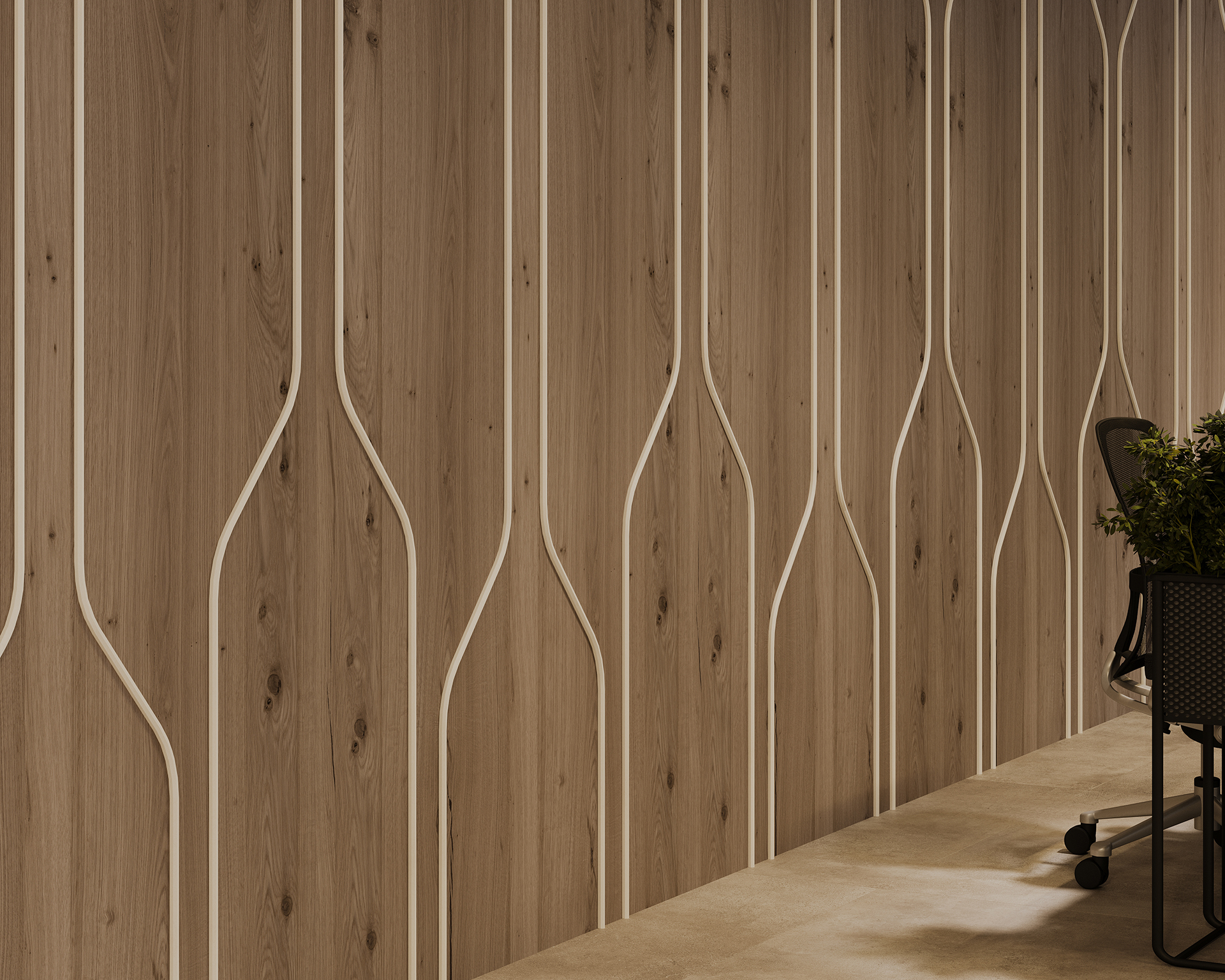 Spine Wall Panels showcase an innovative three-dimensional design, combining WoodGrain sound-absorbing panels with elevated patterns seamlessly layered for a striking visual effect. The variety of bold shapes and colours allows for developing dynamic aesthetics and enhances the depth and interest of any interior.
