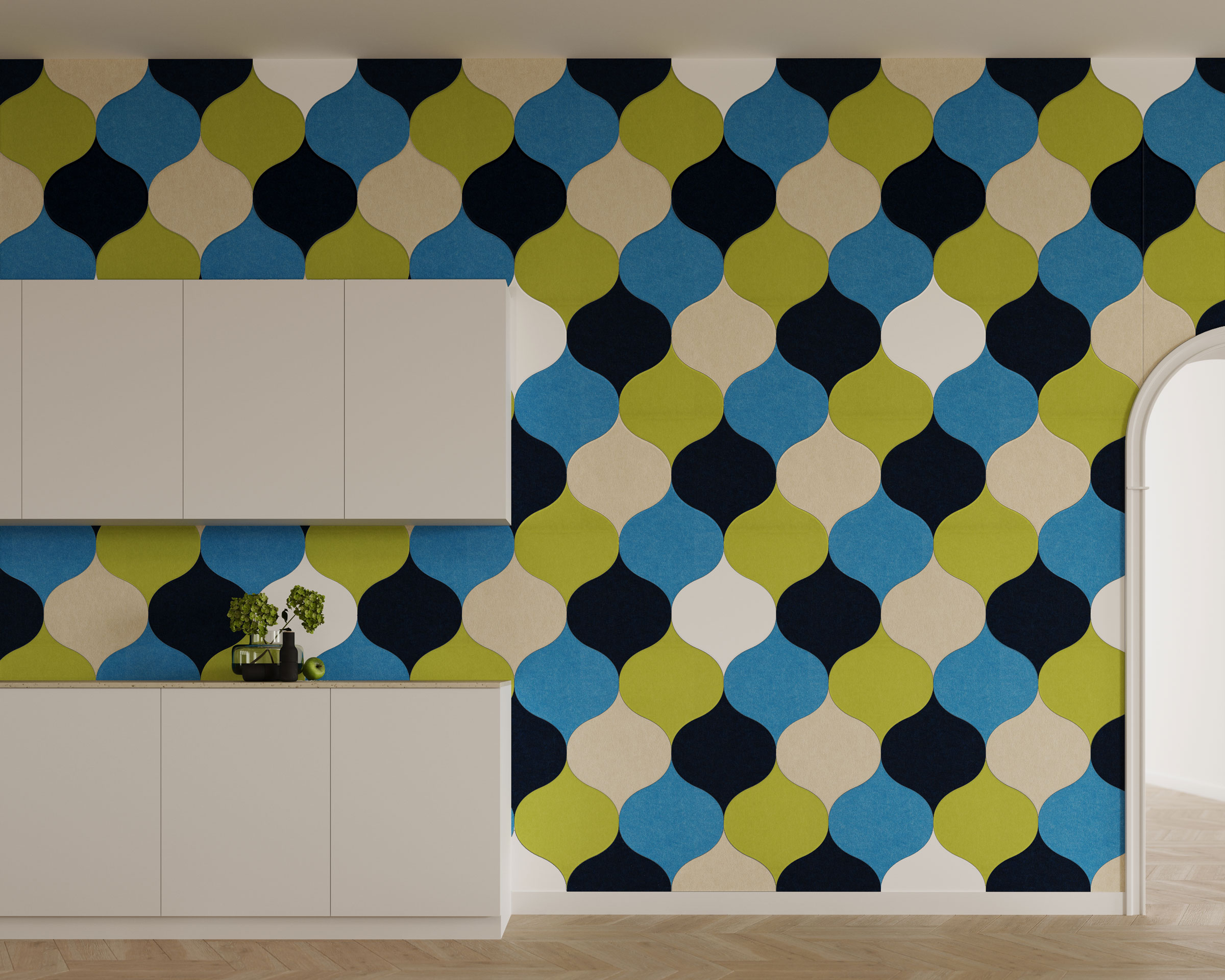 Explore six distinct geometric forms and a kaleidoscope of colors to design a space that resonates with style and tranquility.